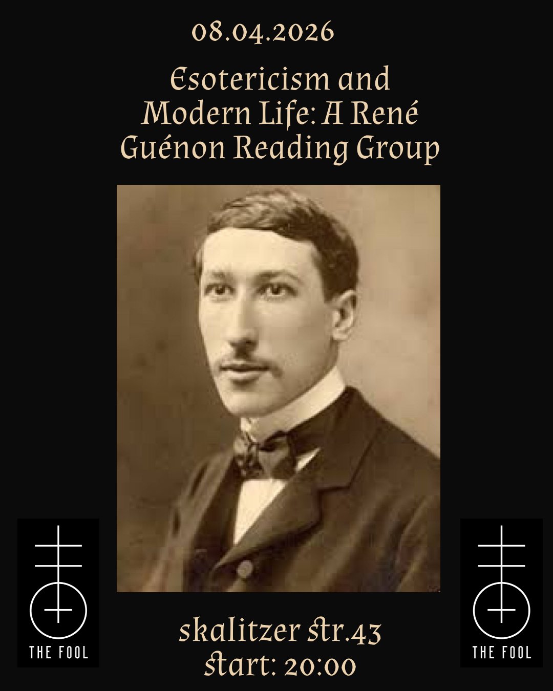 The Fool, in association with Jeffrey Grunthaner, presents a weekly reading and discussion group focused on the work of René Guénon. Guénon was a French-born metaphysician whose work explores perennialism, sacred symbology, and initiatic history. Our discussions will center on his seminal work The Crisis of the Modern World, covering topics such as the limits of …